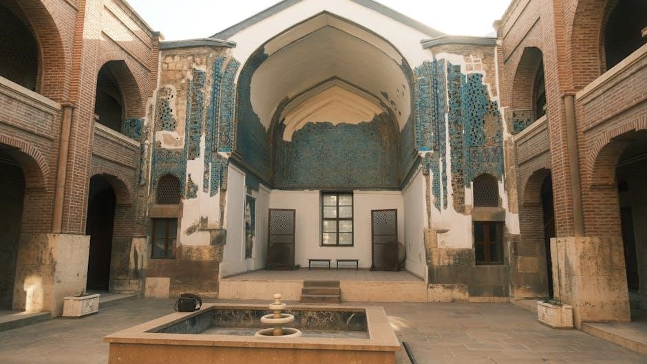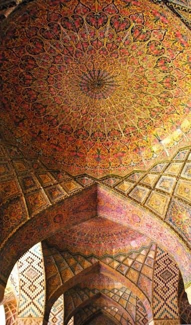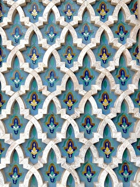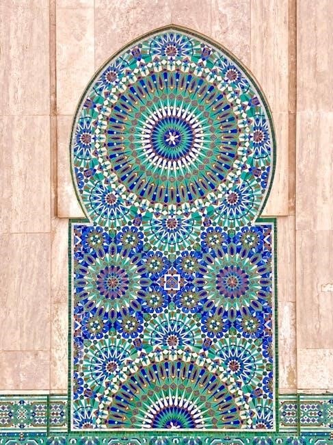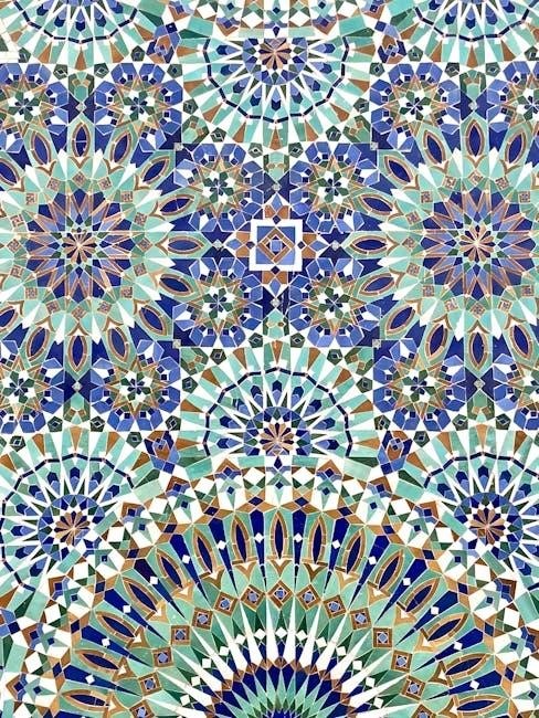 Creating a breathtaking composition with Persian Tiles involves meticulously arranging motifs to achieve harmony and balance. Start by planning the layout, ensuring symmetry and visual flow. Experiment with color gradients and geometric patterns to draw the eye across the design. Consider layering motifs in a central focal point, then expand outward for a cohesive look. Mixing large and small tiles adds depth, while maintaining consistent spacing ensures a polished finish; This approach transforms individual tiles into a stunning, unified masterpiece that captivates the viewer.